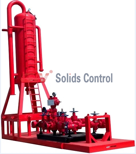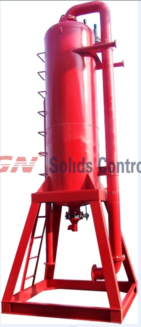 液氣分離器是用于鉆井泥漿中的氣體分離設(shè)備。通常用于節(jié)流管匯之后,鉆井振動(dòng)篩之前,用于分離氣侵泥漿中的有害氣體。分離后的氣體通過(guò)管匯引流到空曠的作業(yè)空間,通過(guò)電子點(diǎn)火裝置進(jìn)行燃燒。