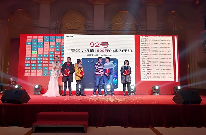在總經(jīng)理的帶領(lǐng)下,冠能公司很多同事成了“花粉”,也就是華為的粉絲。2017年年會主題,就是借用的華為公司任總的話“不破樓蘭終不還”。我們也一直弘揚類似華為的奮斗者文化,讓跟隨公司共同奮斗發(fā)展的員工,有一個獲得認可的回報。奮斗者不一定成功,但成功者必定奮斗過,我們將繼續(xù)努力奮斗。在這幾年年會里,用于抽獎的獎品大部分都是華為產(chǎn)品。今年特等獎是5臺彩色電視機,一等獎是10臺華為PAD,二等獎是20臺華為手機,三等獎是40臺華為手環(huán),四等獎是60臺美的電火鍋。共計獎品135臺。在此,再次恭喜得獎的幸運朋友。