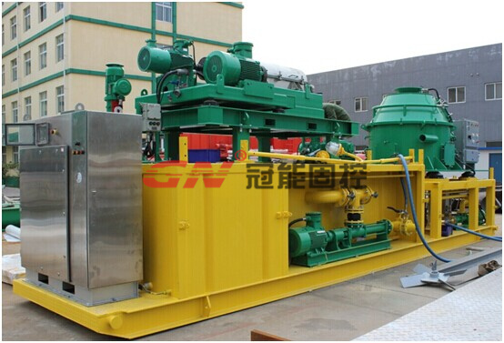 2、排出的干渣經(jīng)過(guò)另一臺(tái)螺旋輸送機(jī)輸送至收集處,液體流向離心機(jī)進(jìn)行第二步的精細(xì)固液分離處理。分離干凈的泥漿儲(chǔ)存起來(lái)準(zhǔn)備鉆機(jī)繼續(xù)回用。