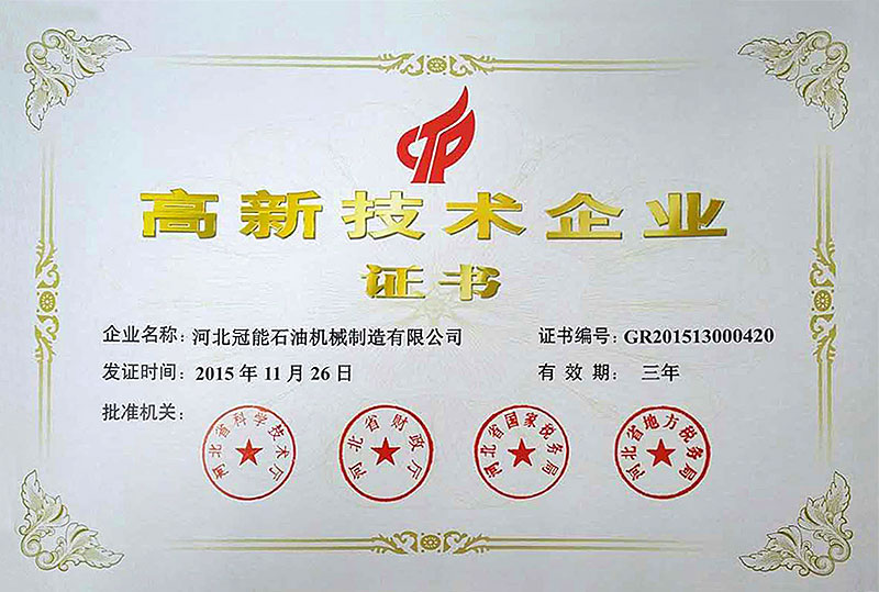 近日,河北冠能固控榮獲“高新技術(shù)企業(yè)”證書。由全國(guó)高新技術(shù)企業(yè)認(rèn)定管理工作領(lǐng)導(dǎo)小組審定,省科技廳、省財(cái)政廳、省國(guó)家稅務(wù)局、省地方稅務(wù)局聯(lián)合正式頒發(fā)“高新技術(shù)企業(yè)”榮譽(yù)證書。這是相關(guān)政府部門給與冠能固控持續(xù)進(jìn)行研究開發(fā)與技術(shù)成果轉(zhuǎn)化的發(fā)展模式的肯定,更預(yù)示著冠能固控未來(lái)的發(fā)展將步入科技創(chuàng)新的快車道。